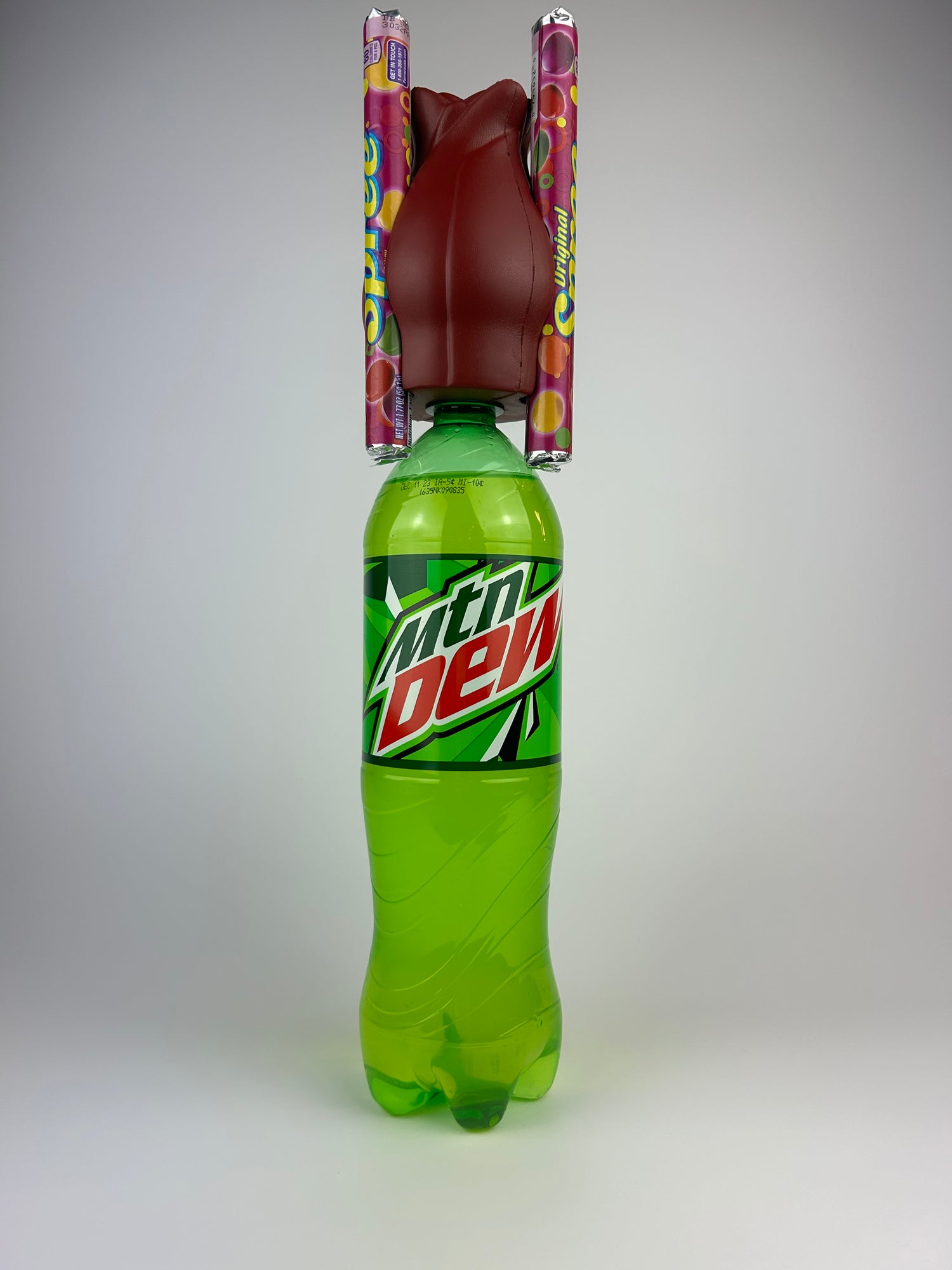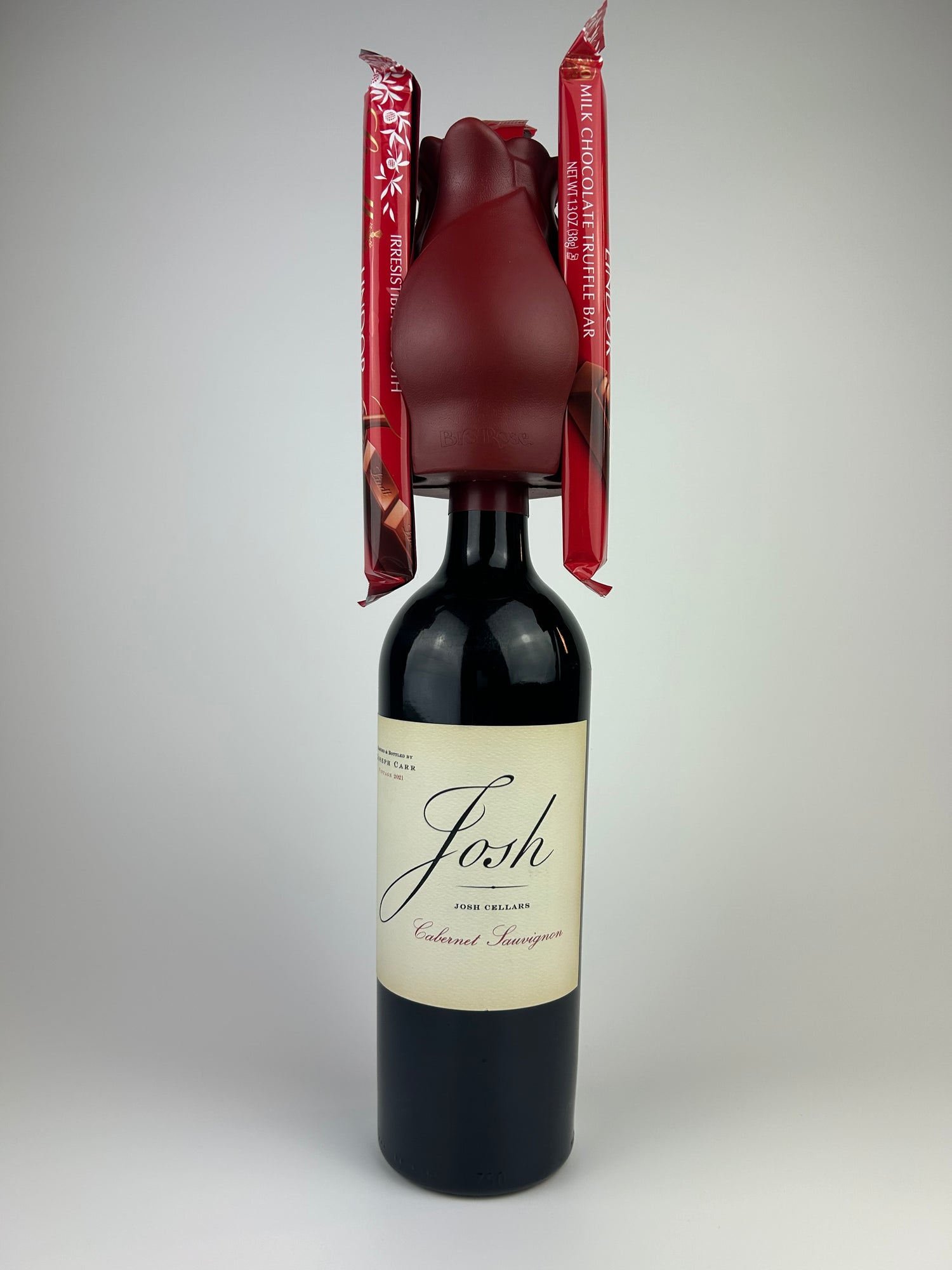 What's love? A rose that hugs Lindor™ Chocolates and allows a bottle of red wine to penetrate its bottom.